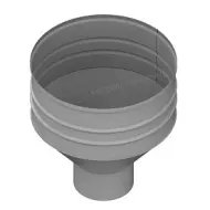| Для сбора воды с фальцевой кровли и некоторых сложных видов кровли вместо желобов используется водосборная воронка. Воронку вставляют в верхнее колено трубы или трубу и дополнительно крепят в верхней части к карнизу хомутом из металлической полосы и саморезом. |